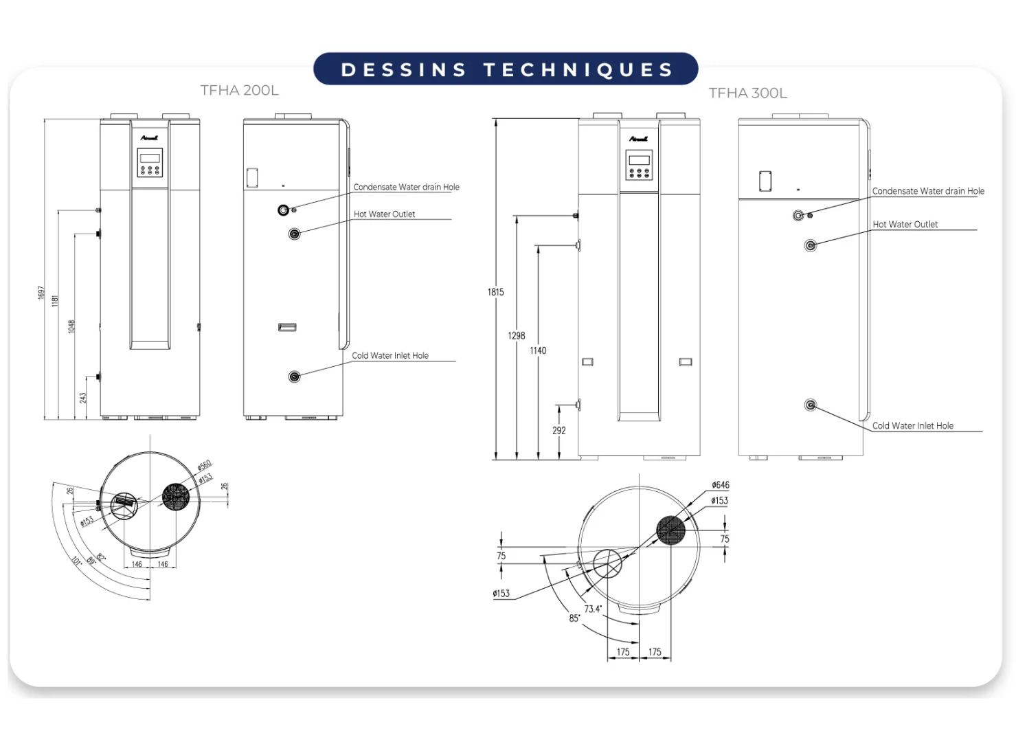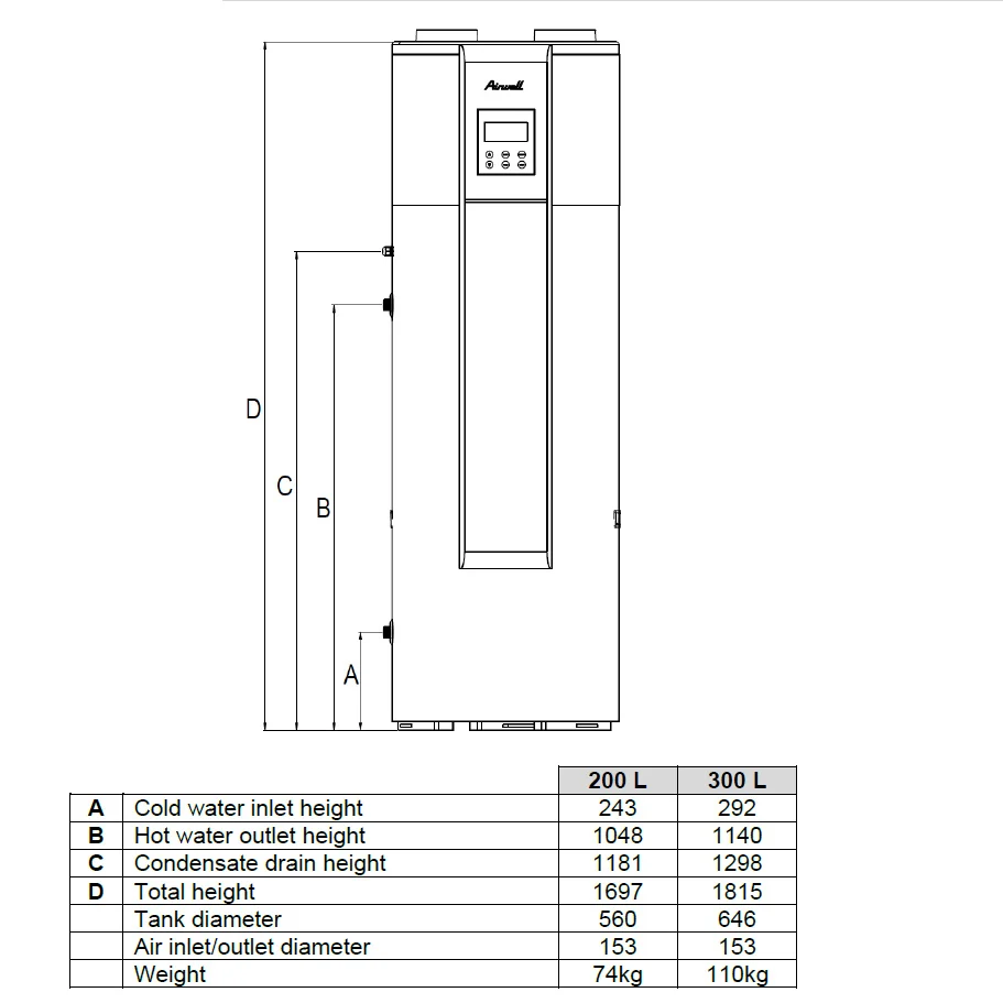 Met een diameter van slechts 560 mm en een geluidsniveau van 46 dB(A) is de boiler geschikt voor binnenplaatsing in technische ruimtes, bijkeukens of compacte woningen.