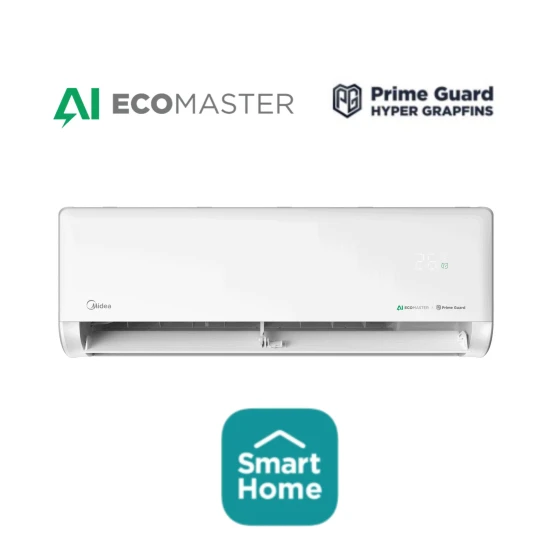 De Midea Solstice 3,5 kW is een energiezuinige single-split airconditioner die koelt, verwarmt en de lucht zuivert. Dankzij het slimme AI-regelsysteem past het toestel automatisch temperatuur, ventilatie en energieverbruik aan, zodat het comfort hoog blijft en de kosten laag blijven.