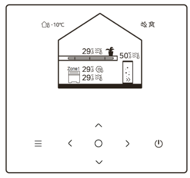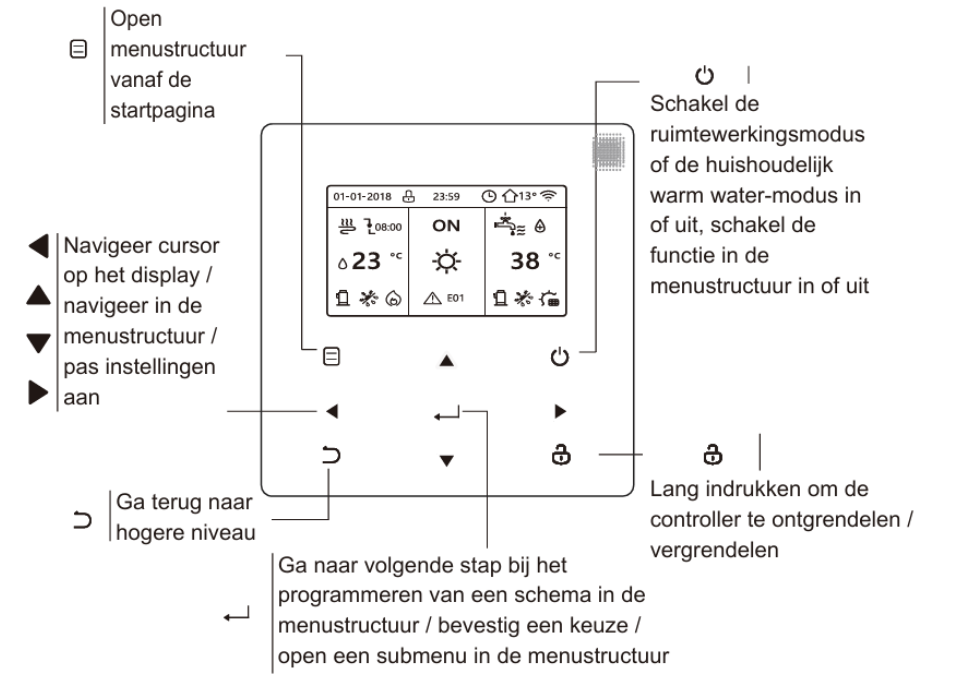 Wanneer je de controller aanzet, zie je direct het overzichtelijke startscherm. Vanuit hier kun je alle instellingen beheren.